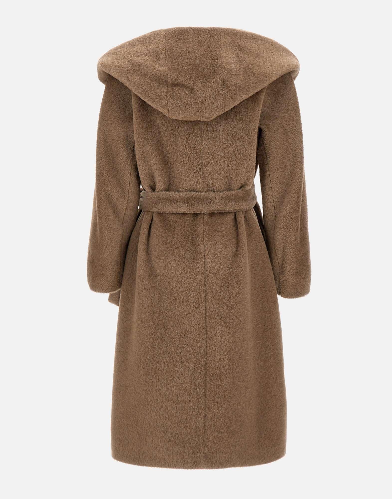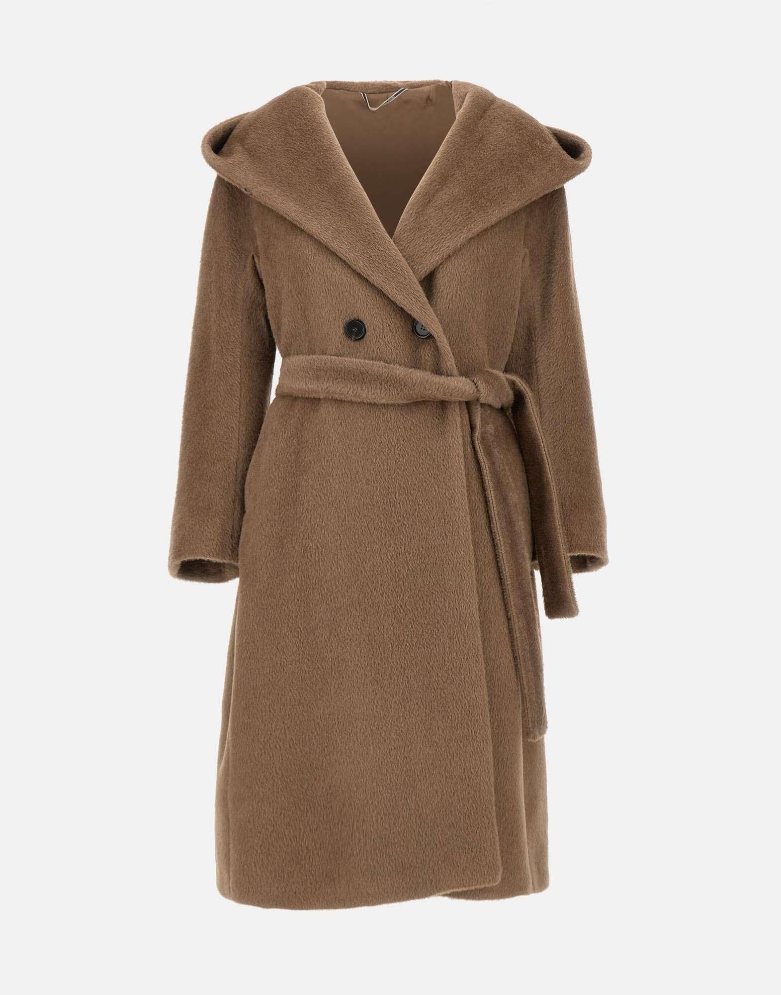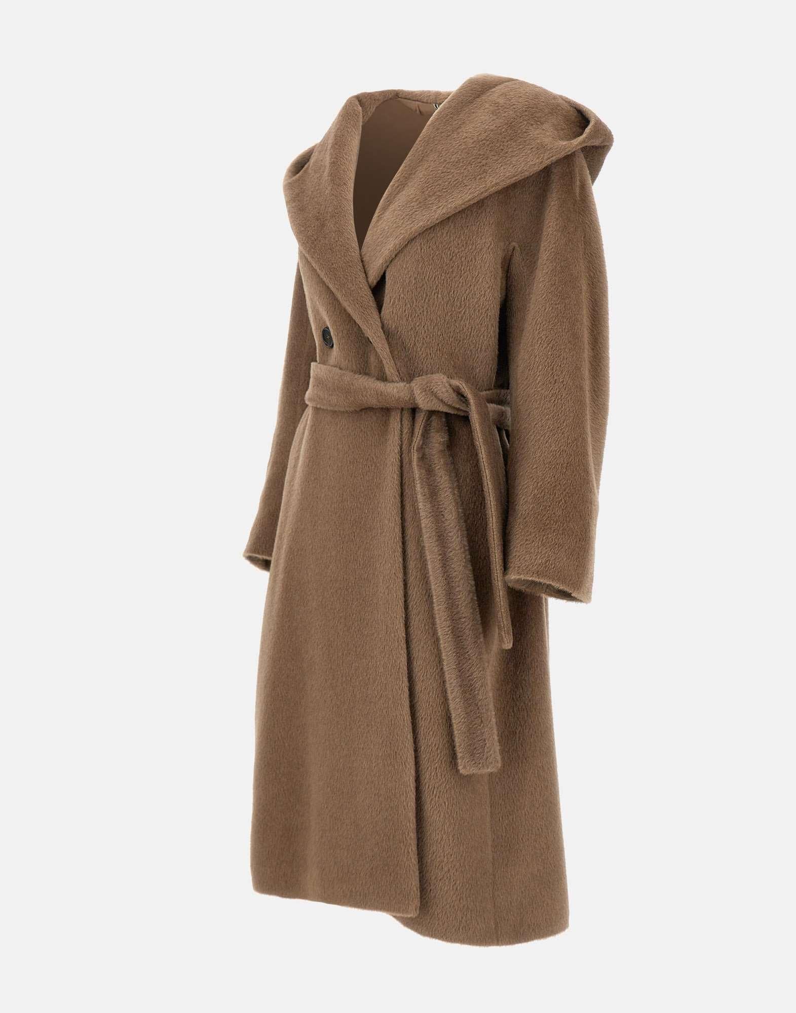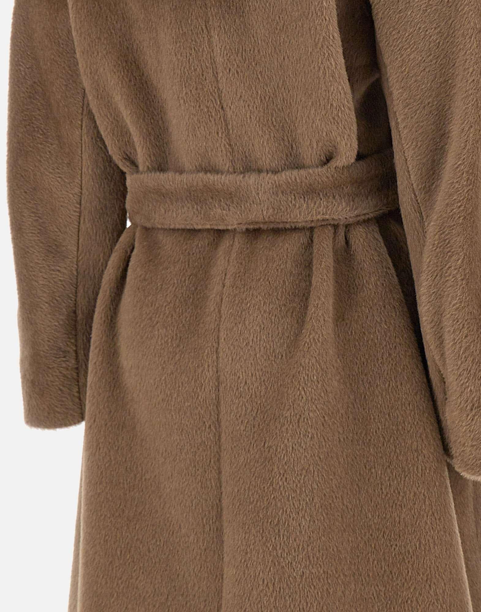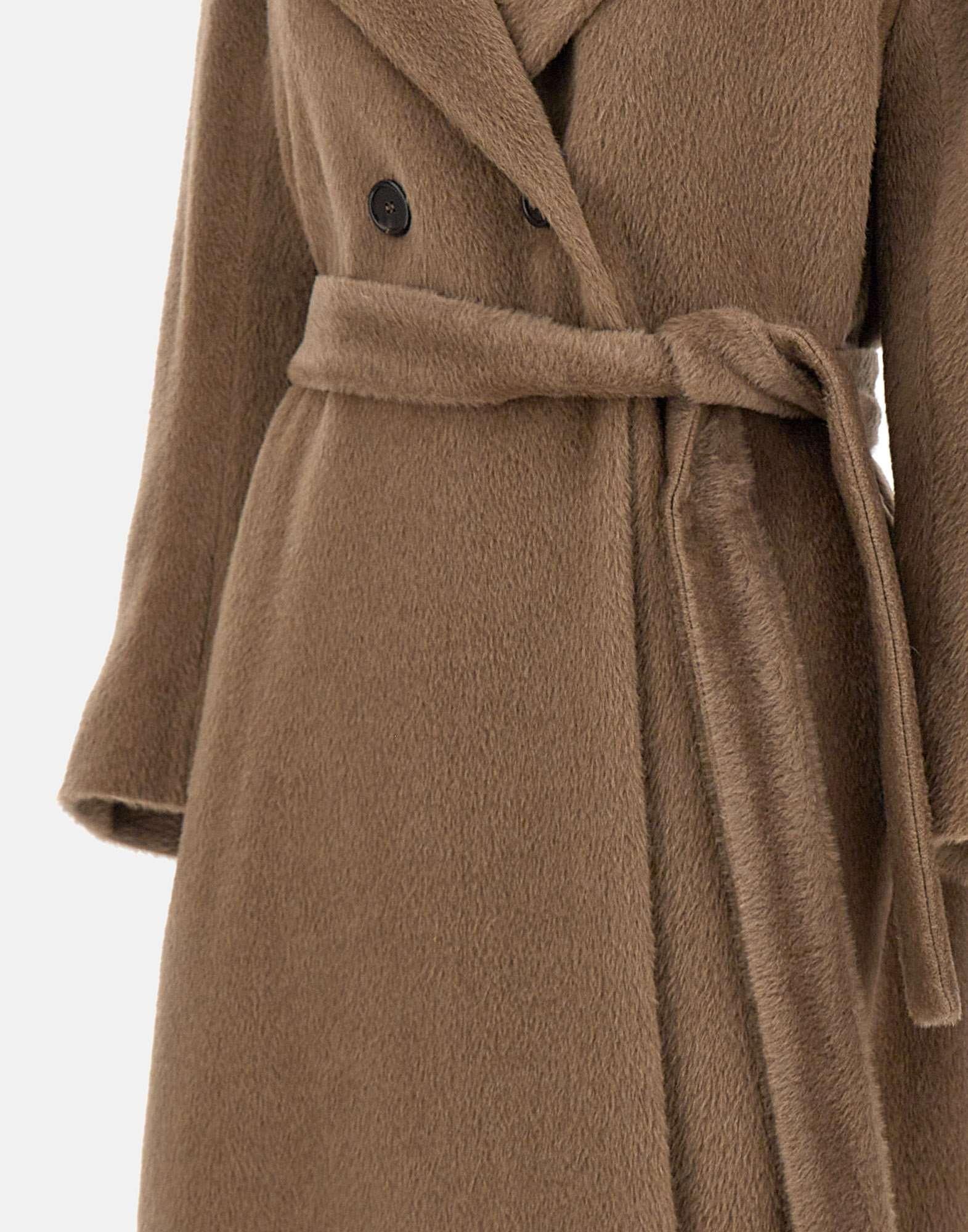 Cappotto "Eliana" 'S Max Mara, color miele, in pregiato e soffice tessuto di alpaca e lana, chiusura doppiopetto, foderato dalla linea avvolgente, maniche lunghe a kimono, tasche laterali a filo, cintura abbinata ad evidenziare la silhouette, relaxed fit.