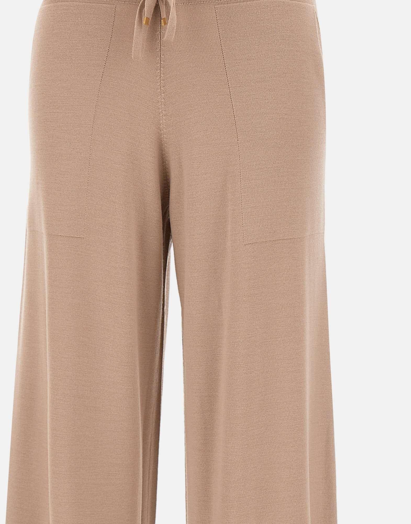 Jogger Eleventy donna, caffelatte, in lana, vita elasticata, tasche laterali a filo, coulisse con finalini oro, gamba extra large con fondo 30cm, regular fit, made in Italy