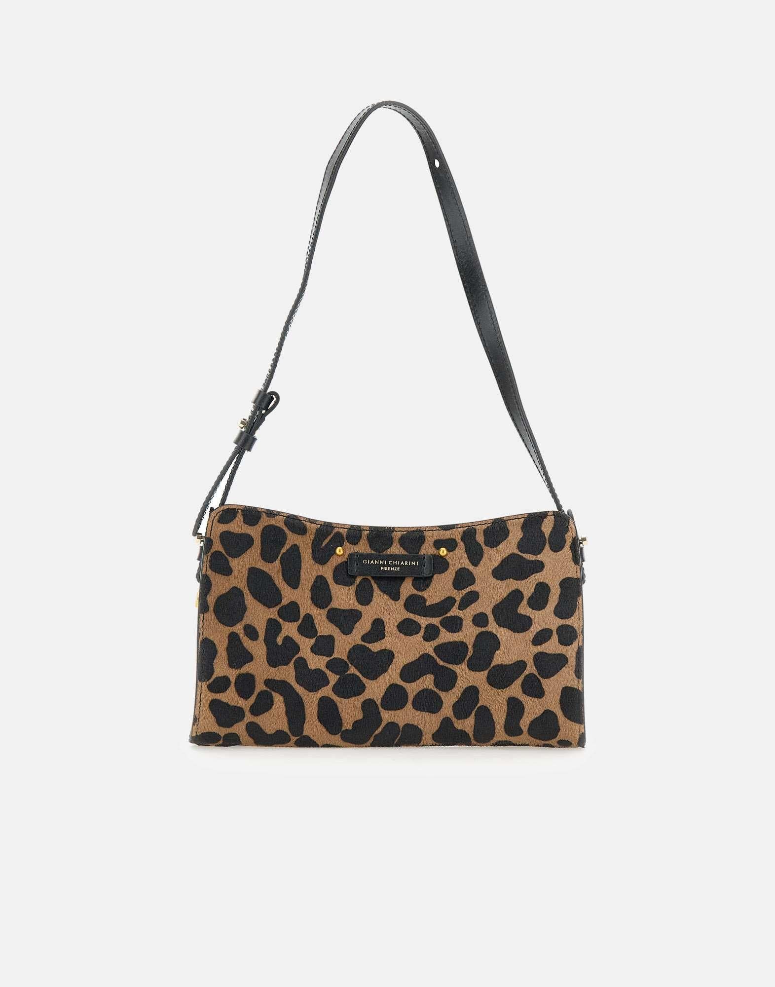 Borsa a spalla "Keira" Gianni Chiarini in pelle effetto cavallino, fantasia animalier sui toni del marrone e nero, manico superiore, galvanica oro, chiusura superiore con zip, scomparto unico,tracolla regolabile e removibile 110cm circa, logo frontale, tasca a bustina interna, made in Italy, dustbag inclusa, misure: 25cm lunghezza , 7cm profondità, 15cm altezza.