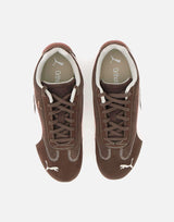Sneakers donna Puma "Speedcat" colore marrone, dal design iconico ispirato alle scarpe da corsa. Caratterizzate da una silhouette affusolata a profilo basso e linee dinamiche, uniscono stile sportivo e fascino urbano. Presentano chiusura con lacci, cuciture a contrasto e suola in gomma per una presa ottimale. Un modello intramontabile che porta lestetica dei motorsport in strada con eleganza e grinta.