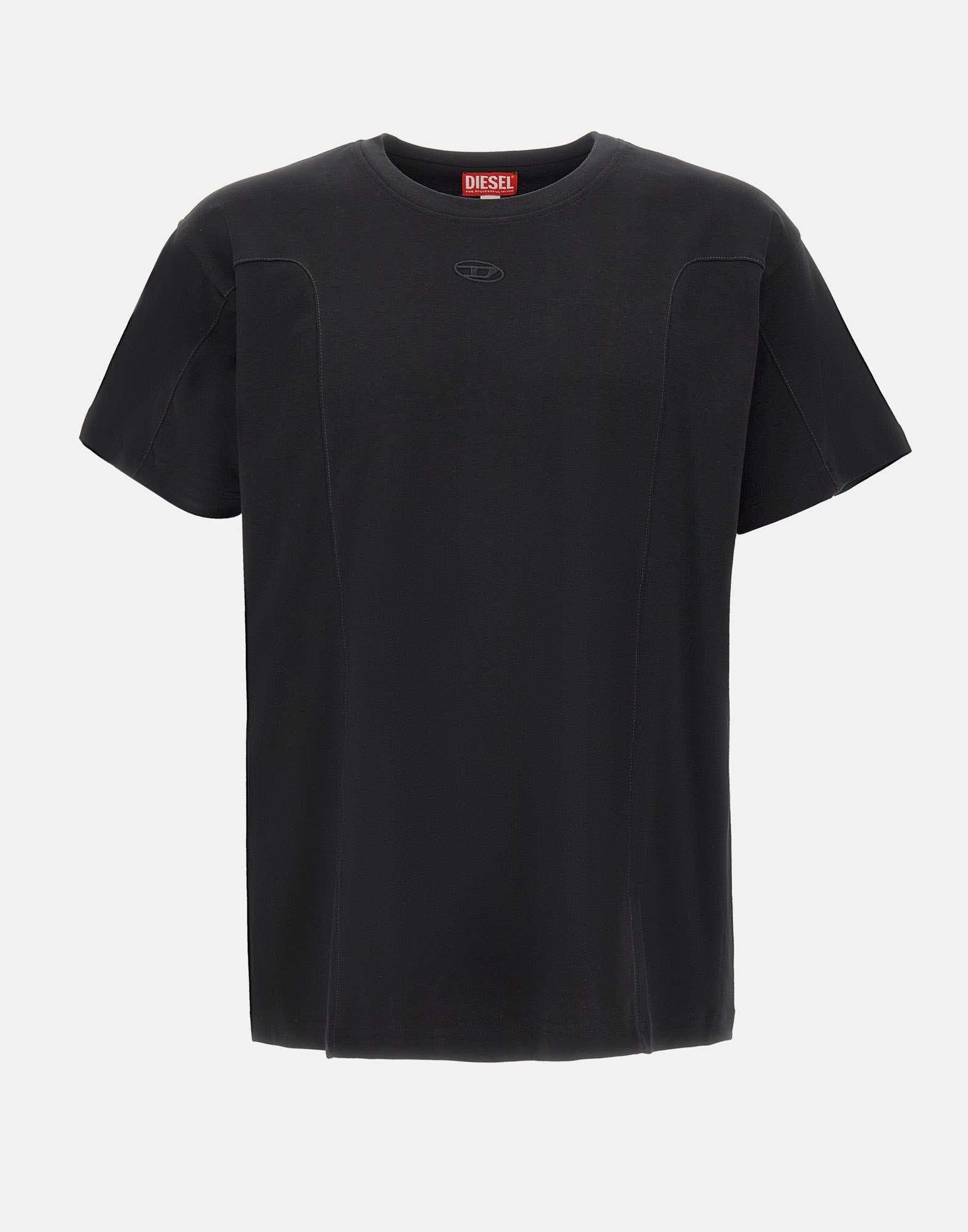 "T-norm-int T-shirt" uomo Diesel, colore nero, in jersey di cotone biologico, logo Oval D ricamato tono su tono sul petto, maniche corte, girocollo, regular fit