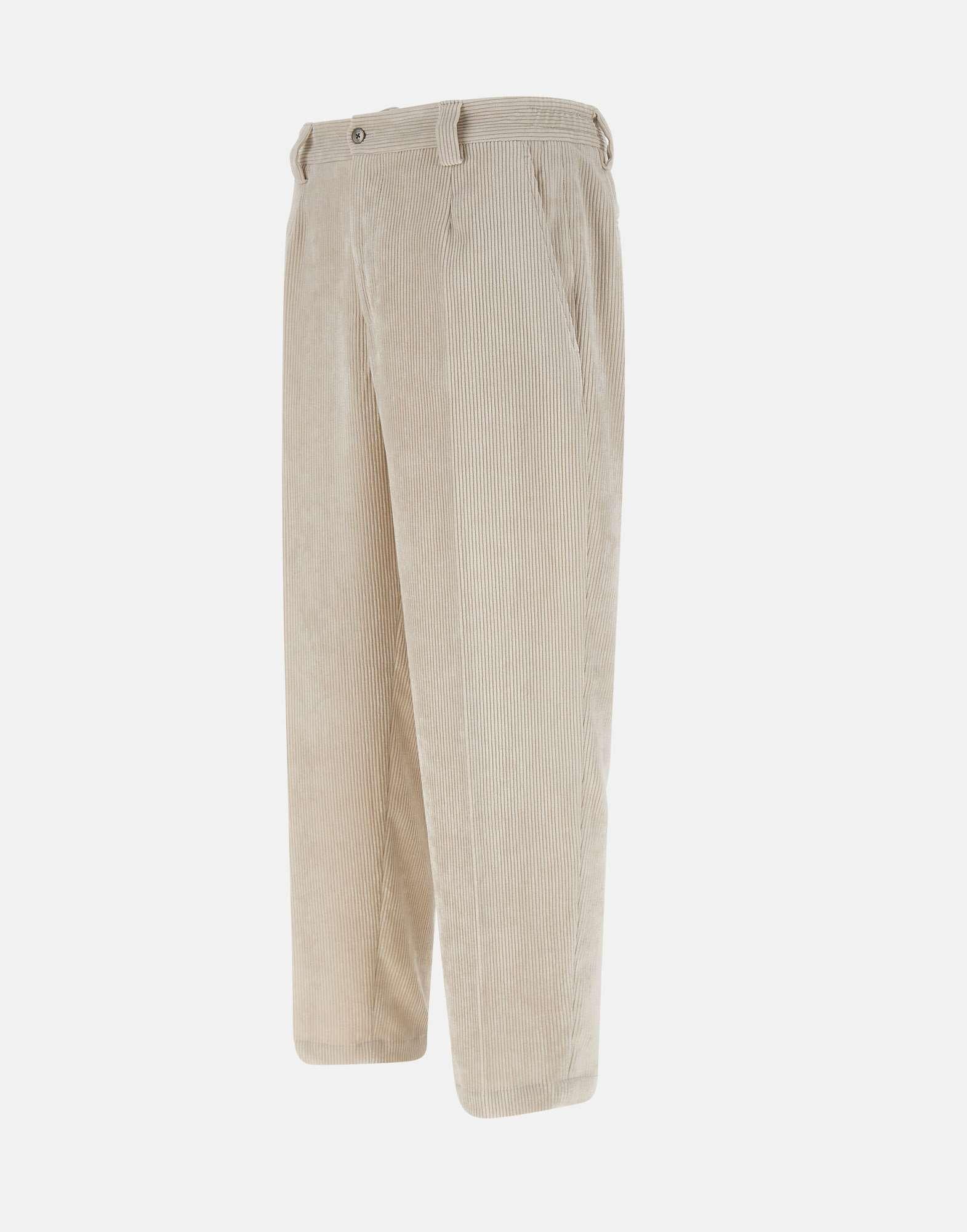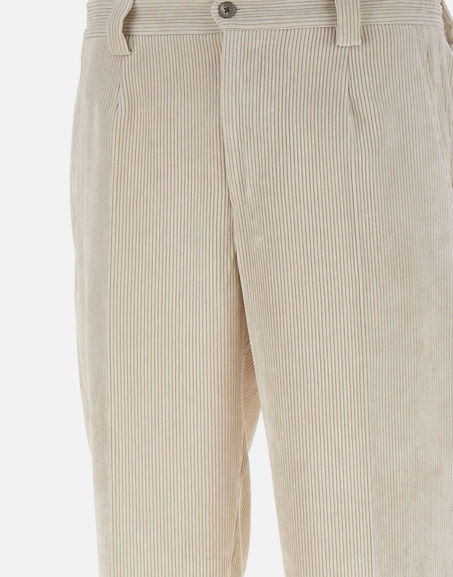 Pantalone da uomo Briglia 1949 "Portofinos" in velluto color bianco, un capo che fonde gusto retrò e sartorialità contemporanea. Realizzato con una texture morbida e vellutata, presenta un taglio classico arricchito da dettagli curati. Dotato di due tasche laterali a fessura e due tasche posteriori a filetto, è completato da una chiusura con zip e bottoni e passanti per cintura, per garantire una vestibilità versatile e strutturata.
