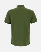 "Big logo polo" Sun68 uomo, verde oliva, in piquet di cotone stretch, maniche corte, colletto classico chiuso da bottoni in tinta, bordi a costine, maxi logo a ricamo sul petto,regular fit