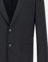 Blazer uomo "H Huge" Boss in lana rigenerata, colore nero, tessuto Natural Bi-Stretch, collo con rever a lancia, chiusura con due bottoni tono su tono, polsini con bottoni, taschino sul petto, tasche anteriori con pattina,tasche interne, foderato, spacchi laterali sul retro, slim fit.