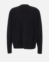 Cardigan Kaos in lana nera, caratterizzato da un raffinato scollo a V e chiusura con bottoni in tinta. Il design è impreziosito da pietre luminose a forma di stella e fiore applicate sulla spalla per un tocco di luce sofisticato. Presenta maniche lunghe, spalle raglan e bordi a costine per un fit morbido e confortevole. Vestibilità relaxed.