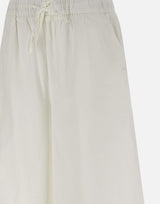 "Cotton drawstring trousers" Sun68 donna, bianco, misto cotone, vita elasticata con coulisse, tasche laterali, logo a ricamo tono su tono, gamba extra larga con fondo 38cm, regular fit.