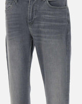 "Delaware jeans" Boss uomo, sottoposti a lavaggio per ottenere una versatile tonalità di grigio, tessuto in denim di cotone stretch, cinque tasche, chiusura con bottone e zip, vita regolare con passanti per cintura, patch logo in pelle sul retro, fondo 17cm, slim fit. Larghezza del piede standard: 35,4 cm