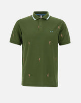 "Full embroidery polo" Sun68 uomo, verde, in piquet di cotone stretch, dettagli ricamati multicolor all over,