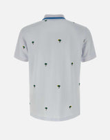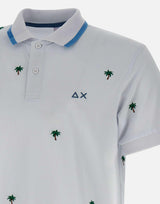 "Full embroidery polo" Sun68 uomo, colore bianco, in piquet di cotone stretch, dettagli ricamati multicolor all over,colletto con profili a contrasto, maniche corte, chiusura con bottoni, logo sul petto a ricamo, regular fit