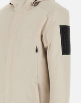 Parka uomo Boss "Hexatech", colore panna, realizzato in tessuto tecnico Hexatech a due strati, antivento, traspirante e water resistant. Dotato di cappuccio regolabile con coulisse, chiusura frontale con zip e patta con bottoni, quattro tasche anteriori con zip, tasca interna e tasca sulla manica sinistra con logo. Polsini rientranti in maglia e coulisse in vita per una vestibilità personalizzata. Imbottitura sintetica che garantisce calore e comfort senza appesantire. Parte della Boss Green Collection. Vestibilità regular.