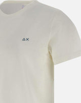 "Jersey linen t-shirt" Sun68 uomo, latte, misto cotone e lino, maniche corte, girocollo, logo a ricamo sul petto a contrasto di colore, regular fit.