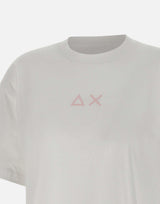 "Over big logo t-shirt" Sun68 donna, colore bianco, in cotone, maniche corte, girocollo, spalle raglan, stampa logo a contrasto centrale sul davanti, relaxed fit