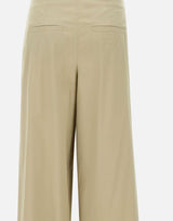 Pantaloni Marella "Menta" donna, sabbia, tessuto popeline di cotone stretch, super fresco e pratico, chiusura con zip, bottone e gancetto, tasche laterali a filetto, tasche sul retro, vita alta, gamba extra large con fondo 31cm, regular fit